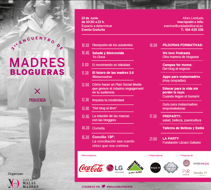 “Eulàlia, vas a Madrid el 13J?” Con este mensaje de Gessamí, de Madre Primeriza empieza esta aventura. ¿A Madrid? ¿El 13 de junio o de julio? ¿A qué? Y es que yo aún no había abierto el mail del Club de Malasmadres con su Save the Date y la info sobre los dos eventos del año: el III Encuentro de Madres Blogueras con YoDona y la Party 2 del Club de Malasmadres. Tras leer el mail y hablar con Gess (madreprimeriza.com) sobre el tema y que me invitara a compartir apartamento con ella y otras blogueras estupendas empezó a concomerme la idea. Y la culpa, que como quién dice yo acababa de llegar de PuntoMOM…