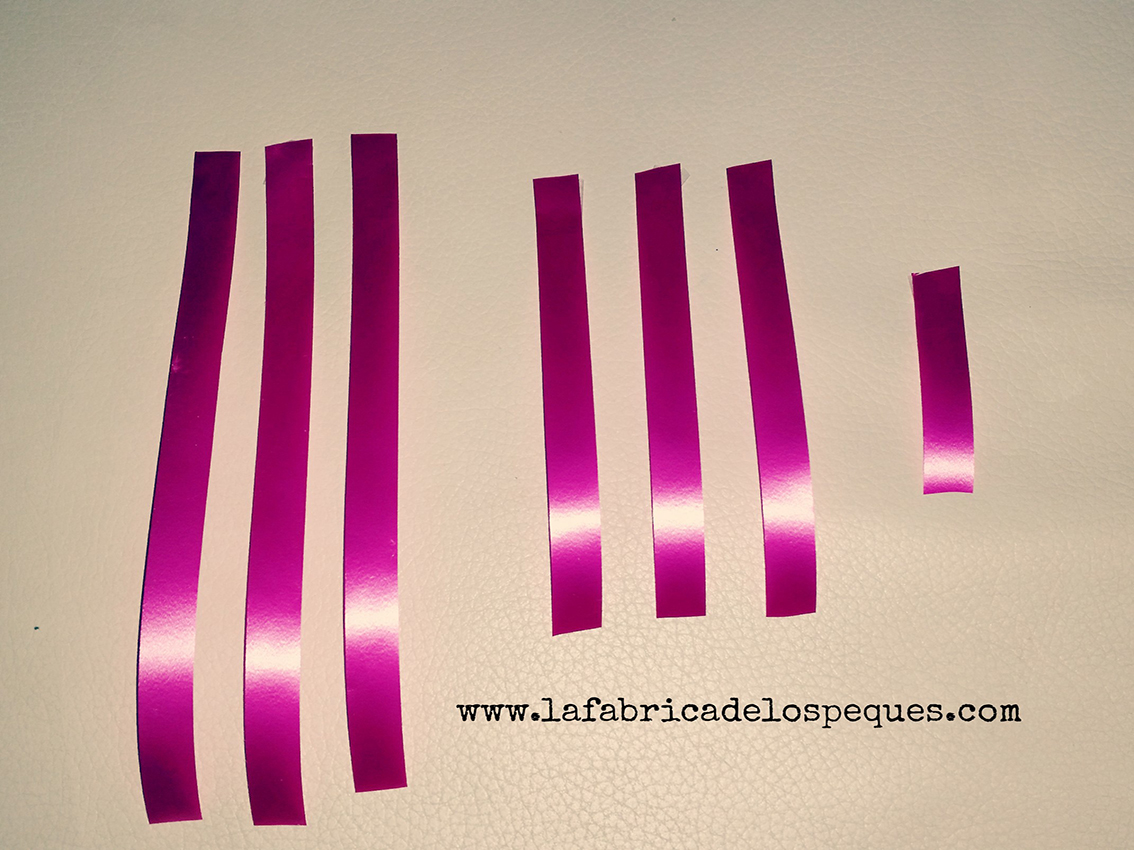 Cortamos siete trozos de cinta de diferentes medidas: tres de 20 cm; otros tres de 14 cm; y uno de 7 cm. Si en lugar de