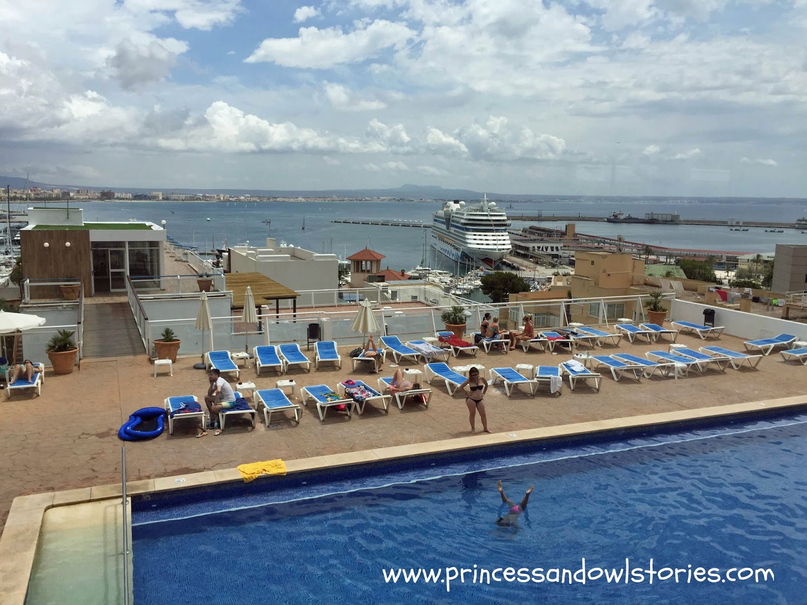 Llegamos al Hotel Amic Horizonte, a unos 2 km del centro de Palma y situado en una ubicación excelente frente a la Bahía de Palma y pasamos a una de sus salas, con unas vistas estupendas. Allí estaban Elena,