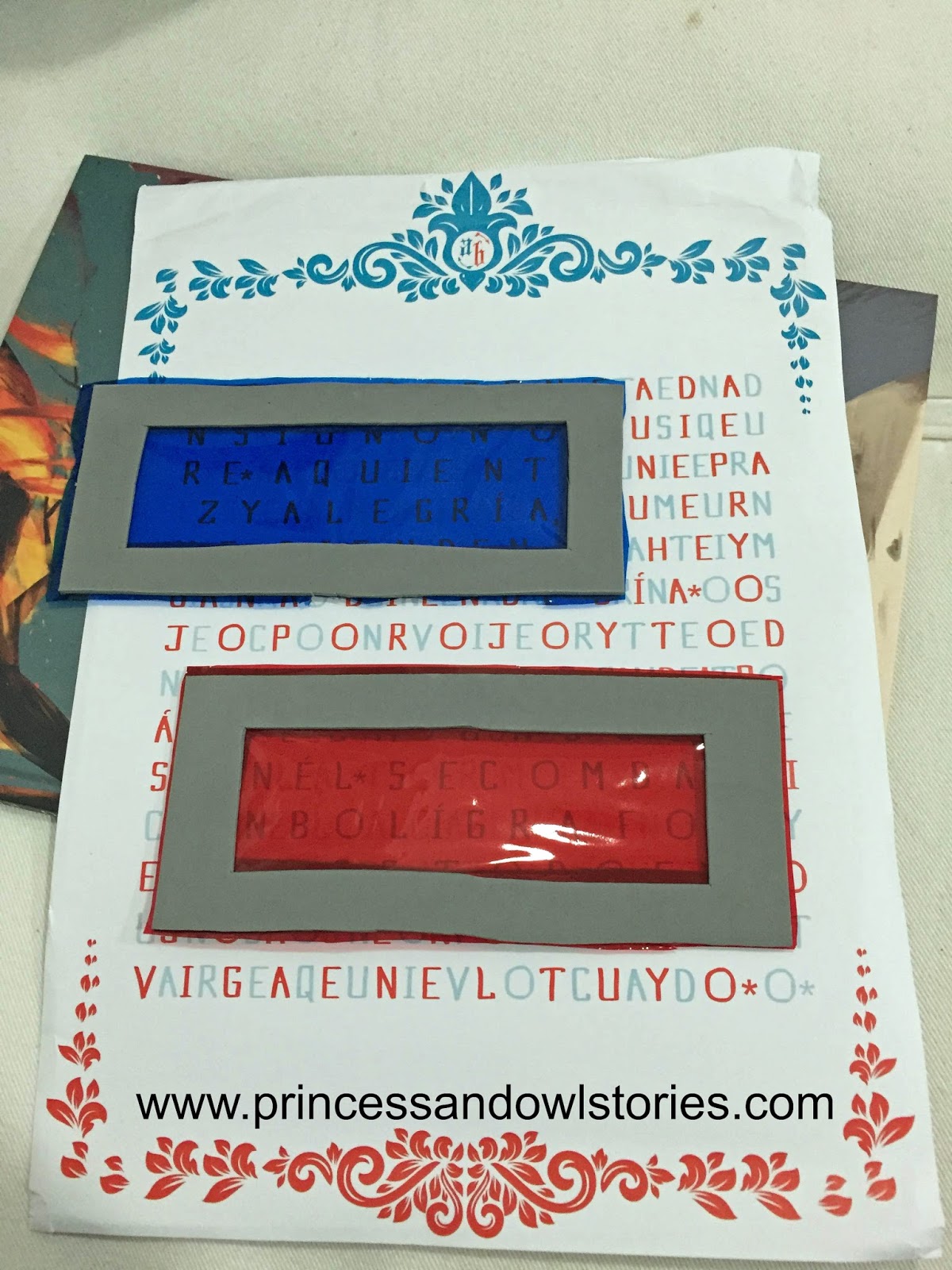 Además, este precioso cuento venía, en esta ocasión, con una manualidad relacionada. Nosotras recibimos la de los mensajes ocultos y Princess alucinaba con el resultado diciendo que era magia. Se trataba de hacer unas lupas de colores para descubrir un código secreto: cortamos unas ventanitas en goma eva y on papel transparente de colores les hacemos lo que sería el “cristal”. Y ya tenemos nuestras lupas mágicas para descifrar el código secreto.