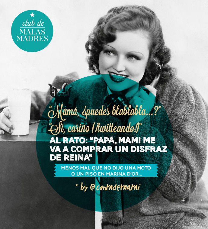 Pero, no nos engañemos, somos mujeres y seres individuales también; que tienen deseos y necesidades que a veces, sólo a veces, transgreden la norma de la “buena madre”. Me refiero, por ejemplo, a apagar el vigilabebés porque no puedes más de sueño, a poner a la niña en el andador para que te deje un rato tranquila, a darle un poco de helado de chocolate para que se calle… En fin, a hacer esas cosas “mal vistas” en un arrebato de rebeldía. Soy mamá si, pero también persona y necesito momentos de tranquilidad! Yo me sentía así muchas veces. Y casi por casualidad me topé con el club de #malasmadres.