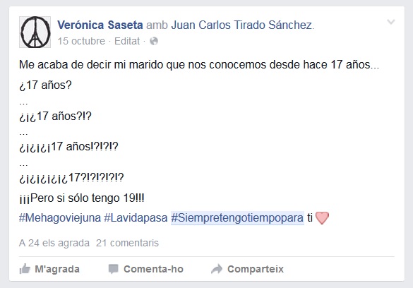 18 noviembre, 2015 at 15:49Qupe lindo Eulalia! Me encantó el primer mensaje. Es además el tiempo que hace que estoy con mi marido y también tengo 19…Besos!