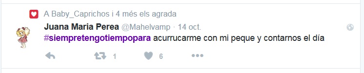 En Twitter ha habido bastante movimento, puedes verlo aquí. Y la verdad es que me ha costado bastante decidir porque había muchos momentazos. Aún así no he podido evitar decantarme por este de Juana Maria Perea, del blog Mi vida en un suspiro, por lo cotidiano y necesario: