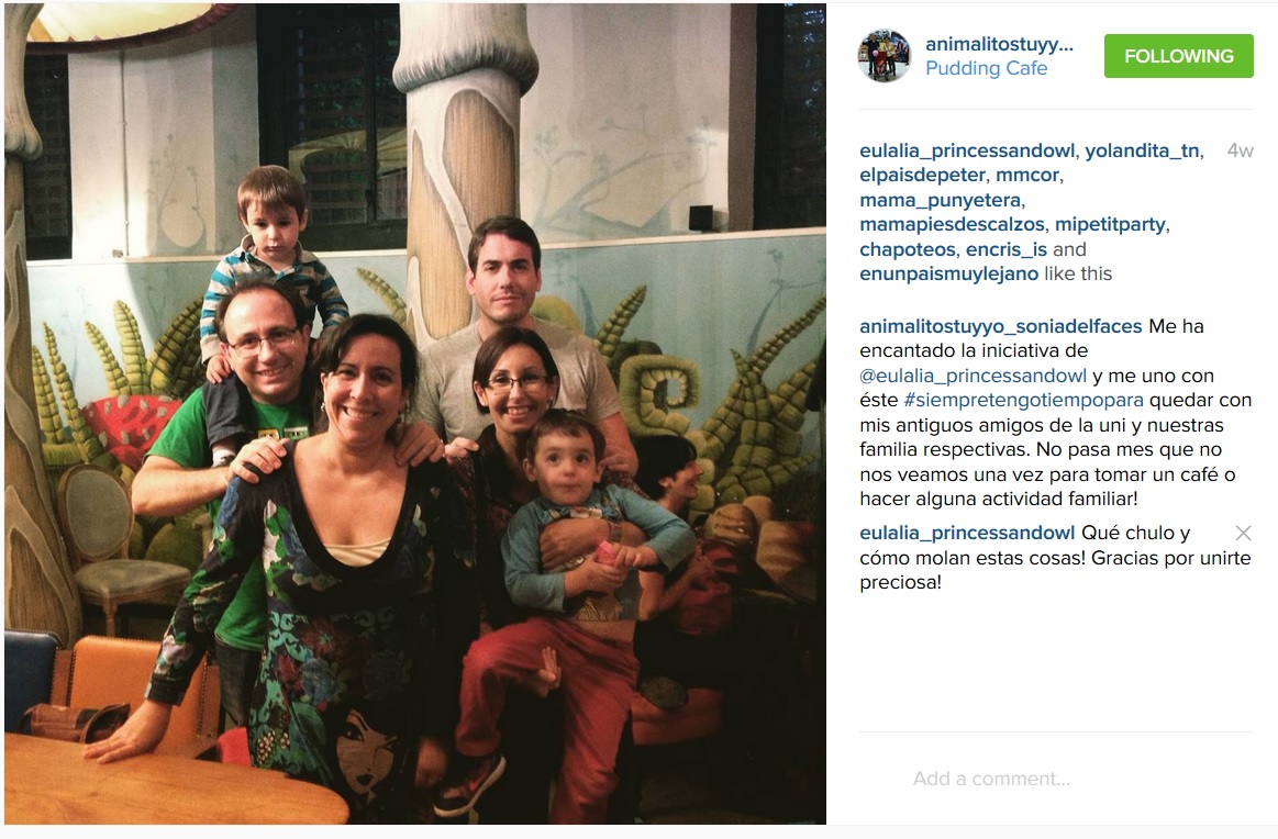 Ésta ha sido sin duda la red con más actividad. Y hablo por mí la primera ya que es mi favorita. Puedes ver aquí todas las fotos publicadas con el hastag #siempretengotiempopara. La verdad es que ha sido muy muy difícil escoger sólo una en esta red porque habéis compartido momentos preciosos y fotos muy bonitas. Y aunque me ha costado mucho me quedo con esta de Sonia, de Animalitos tu y yo, porque a mi también me encantan reencontrarme con amigos de la uni.