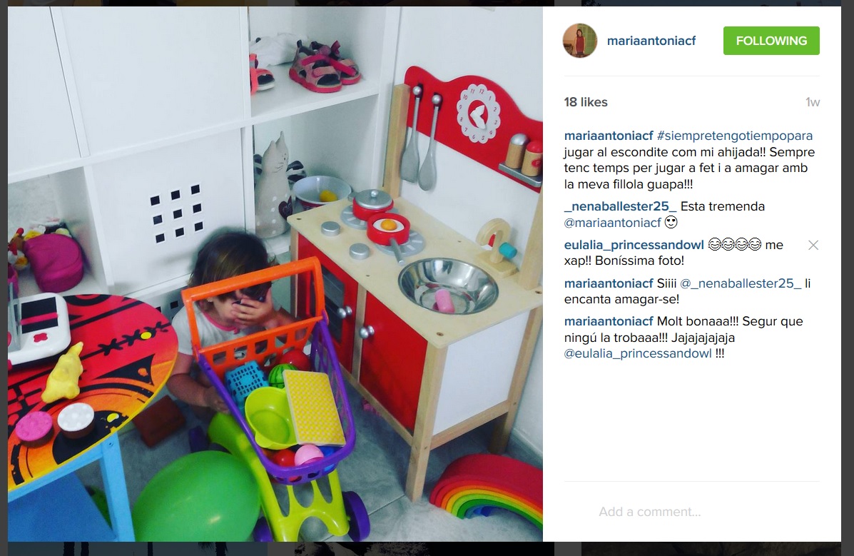 19 noviembre, 2015 at 16:00Quina iniciativa més bona! és que tenim una nina que li encanta jugar a fet i amagar amb la seva jove!!!! m'encanta #siempretengotiempo per jugar amb ellaa!!!